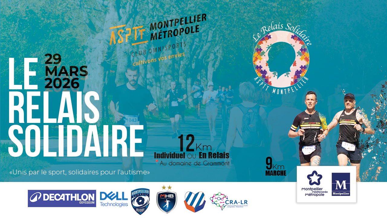 L’ASPTT Montpellier Métropole présente sa 7ème édition du Relais Solidaire . La course se tiendra le 29 mars 2026 à 10h00 et sera au profit de l’inclusion d’enfants avec autisme.